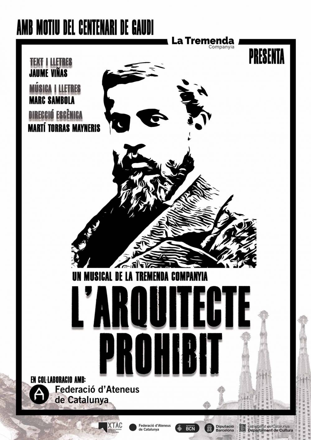 ►La Tremenda i la Federació d’Ateneus de Catalunya presenten una producció de Jaume Viñas, amb música de Marc Sambola i direcció de Martí Torras Mayneris, un homenatge al llegat de Gaudí en el centenari de la seva mort.